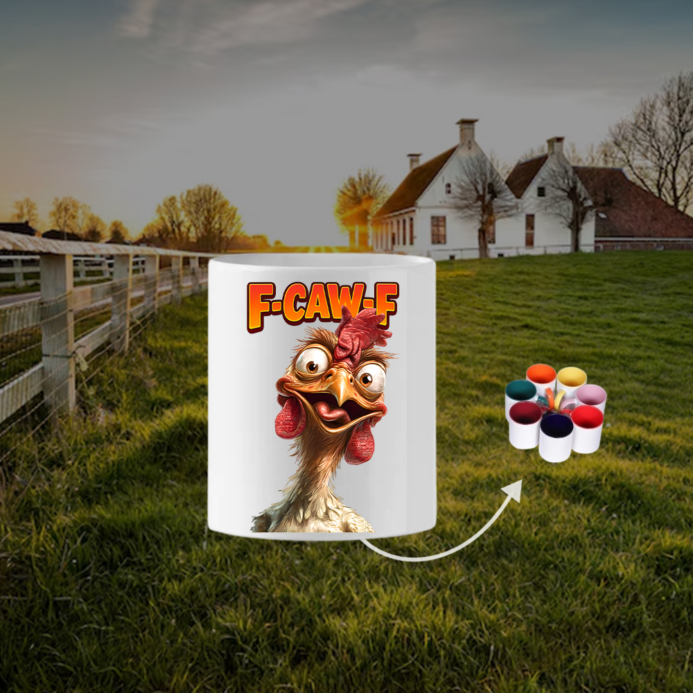 Cana F-CAW-F este alegerea perfectă pentru cei care adoră glumele și vor să-și înceapă dimineața cu energie și bună dispoziție. Designul funny cu găina haioasă va stârni zâmbete la birou, acasă sau atunci când o oferi cadou.